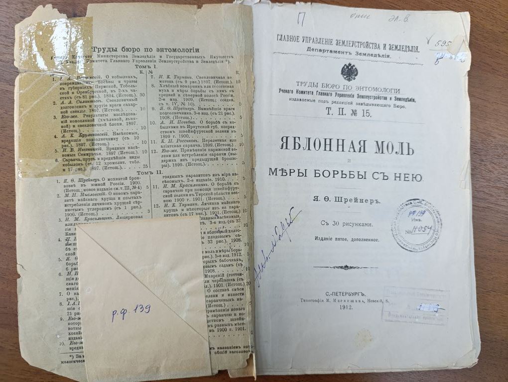 Шрейнер, Яков Фаддеевич Яблонная моль и меры борьбы с ней / [Соч.] Я.Ф. Шрейнера. - 5-е изд., доп. - Санкт-Петербург : тип. М. Меркушева, 1912. - 45, [2] с., 30 ил.; 24. - (Главное управление землеустройства и земледелия. Департамент землепользования. Труды Бюро по энтомологии Ученого комитета Главного управления землеустройства и земледелия, издаваемые под редакцией заведующего Бюро; Т. 2. № 15).