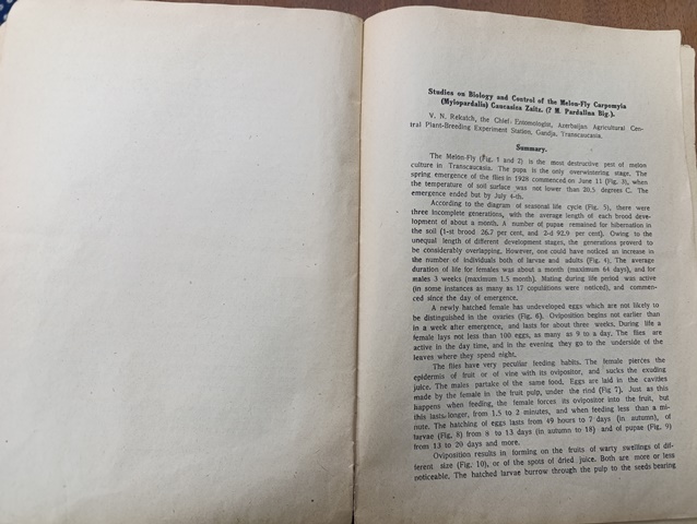 Материалы по биологии и по борьбе с дынной мухой Carp.omyia (myiopardalis) caucasica Zaitz [Текст] / В. Н. Рекач ; НКЗ-АССР. - Баку : Наркозем АССР, 1930. - 32 с., 10 л. ил.; 25 см. - (Труды Азербайджанской центральной сельскохозяйственной опытной и селекционной станции им. Серго Орджоникидзе. Энтомологический отдел; Вып. 9).