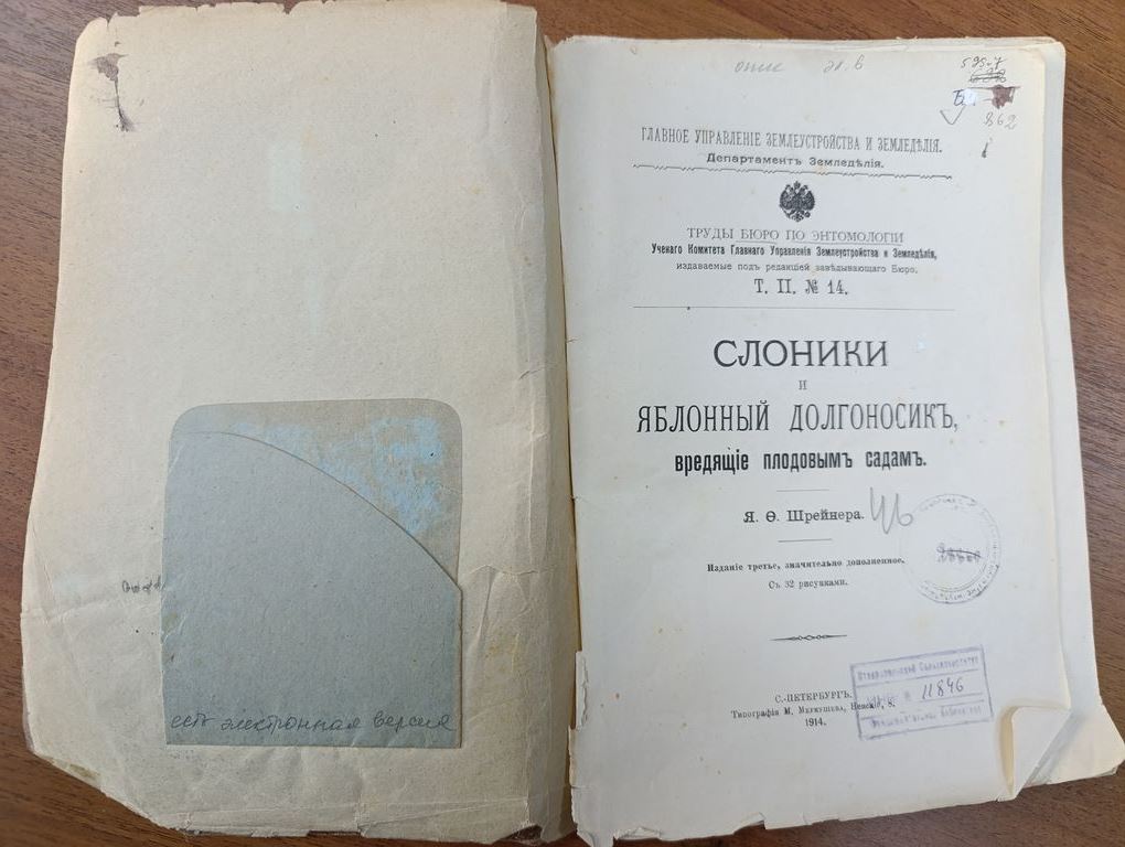 Слоники и яблонный долгоносик, вредящие плодовым садам / [Соч.] Я.Ф. Шрейнера. - 3-е изд., знач. доп. - Санкт-Петербург : тип. М. Меркушева, 1914. - 70 с., 32 ил.; 24. - (Главное управление землеустройства и земледелия. Департамент земледелия. Труды Бюро по энтомологии Ученого комитета Главного управления землеустройства и земледелия, издаваемые под редакцией заведующего Бюро; Т. 2, № 14).
