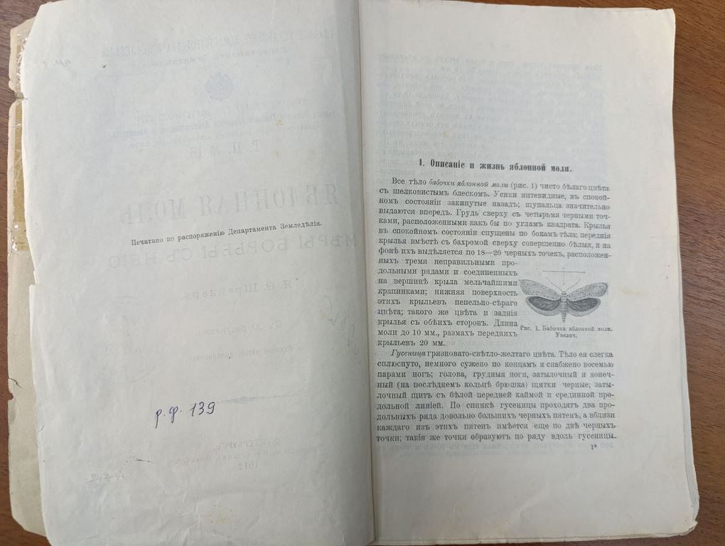 Шрейнер, Яков Фаддеевич Яблонная моль и меры борьбы с ней / [Соч.] Я.Ф. Шрейнера. - 5-е изд., доп. - Санкт-Петербург : тип. М. Меркушева, 1912. - 45, [2] с., 30 ил.; 24. - (Главное управление землеустройства и земледелия. Департамент землепользования. Труды Бюро по энтомологии Ученого комитета Главного управления землеустройства и земледелия, издаваемые под редакцией заведующего Бюро; Т. 2. № 15).
